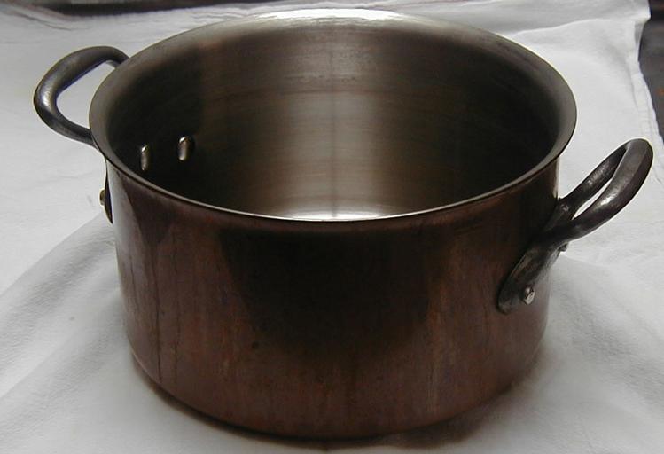 Keywords: Copper-saucepot.jpg my own picture to be added to en cookware and bakeware Transferred from http //en wikipedia org en wikipedia; transferred to Commons by User IvanLanin using http //tools wikimedia de/~magnus/commonshelper php CommonsHelper 2006-11-07 Original uploader was FiveRings at http //en wikipedia org en wikipedia Released into the public domain by the author FiveRings en original upload log page en wikipedia Copper-saucepot jpg 2006-11-07 21 05 FiveRings 960×656× 73071 bytes <nowiki>my own picture to be added to cookware and bakeware</nowiki> Cooking pots Copper cookware |