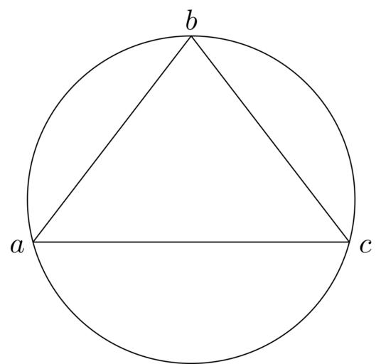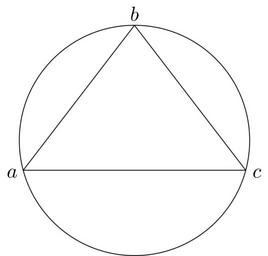 | Keywords: Coppernicus 012.svg de à ber die Kreisbewegungen der Weltkörper 12 File Kreisbewegungen-Coppernicus-0 djvu p 43 1879 w Nicolaus Copernicus File Coppernicus_012 png PD-old-100 De revolutionibus drawings LaTeX Source Code <syntaxhighlight lang latex > complile with »pdflatex« \documentclasstikz convert pdf2svg standalone \begin document \begin tikzpicture \draw 0 0 circleradius 2; \coordinate A at -165 2 ; \coordinate B at 90 2 ; \coordinate C at -15 2 ; \draw A -- B ; \draw A -- C ; \draw B -- C ; \draw A + -165 0 2 node a ; \draw B + 90 0 2 node b ; \draw C + -15 0 2 node c ; \end tikzpicture \end document </syntaxhighlight> |