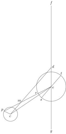 | Keywords: Coppernicus 099.svg de à ber die Kreisbewegungen der Weltkörper 99 File Kreisbewegungen-Coppernicus-0 djvu p 281 1879 w Nicolaus Copernicus File Coppernicus_099 png PD-old-100 De revolutionibus drawings LaTeX Source Code <syntaxhighlight lang latex > complile with »pdflatex« \documentclasstikz convert pdf2svg standalone \usepackage tkz-euclide \usetkzobj all \begin document \begin tikzpicture \tkzSetUpLineline width 0 4pt \pgfmathsetmacro \DC 5 7 ; \pgfmathsetmacro \CP 0 65 ; \pgfmathsetmacro \ES 1 35 ; \tkzDefPoint -131 \DC C \tkzDefPoint 0 0 D \tkzDefPoint -90 2 7 \CP E \tkzDefPoint 90 \DC F \tkzDefPoint -90 \DC G \begin pgfinterruptboundingbox \tkzInterLCR D C C \CP cm \tkzGetPoints X X2 \tkzDefPointByrotation center C angle 105 X \tkzGetPoint P \tkzInterLL E P D C \tkzGetPoint M \tkzInterLCR E P E \ES cm \tkzGetPoints R2 R \tkzDefLineparallel through E D C \tkzGetPoint C2 \tkzInterLC E C2 E R \tkzGetPoints T S \end pgfinterruptboundingbox \tkzDrawCircle C P \tkzDrawCircle E R \draw F -- G ; \draw D -- C ; \draw E -- C ; \draw E -- P ; \draw C -- P ; \draw S -- T ; \draw C + -100 0 2 node c ; \draw D + 30 0 2 node d ; \draw E + -30 0 2 node e ; \draw F + 90 0 25 node f ; \draw G + -90 0 2 node g ; \draw M + 130 0 2 node m ; \draw P + 150 0 2 node p ; \draw R + 170 0 2 node r ; \draw S + -100 0 2 node s ; \draw T + 80 0 2 node t ; \end tikzpicture \end document </syntaxhighlight> |