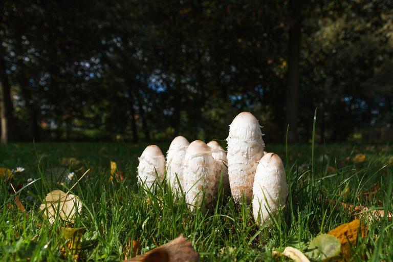 Keywords: coprinus mushrooms meadow grass autumn