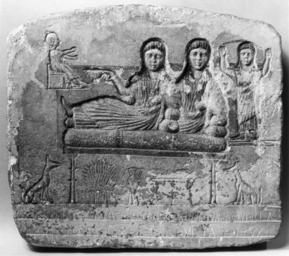 | Keywords: Coptic - Funerary Stele with Family Portrait - Walters 263.jpg This relef stele depicts two women a girl and a boy on a funeral couch between two jackals The two jackals are the jackel god of the dead Anubis The piece has an inscription in Greek and is said to be from Akhmim 2nd-4th century AD Late Antique limestone with plaster ground and paint cm 35 40 2 accession number 26 3 25044 Dikran Kelekian New York and Paris date and mode of acquisition unknown Henry Walters city Baltimore Walters Art Museum Henry Walters Acquired by Henry Walters 1923 Translation Didymis 40 years old Theodora her daughter 19 Athas a baby of one year not represented Dionysarin 45 Athur 10 1st year of the indiction Farewell Pagan and Christian Egypt Egyptian Art from the First to the Tenth Century A D Brooklyn Museum Brooklyn 1941 Beyond the Pharaohs Egypt and the Copts in the Second to Seventh Centuries A D Museum of Art Rhode Island School of Design Providence; The Walters Art Gallery Baltimore 1989 Ancient Faces Mummy Portraits from Roman Egypt The Metropolitan Museum of Art New York 2000 place of origin Burma in present-day Myanmar Walters Art Museum license Coptic art in the Walters Art Museum Media contributed by the Walters Art Museum needs category review Coptic funerary steles Ancient Egyptian art from Akhmim |