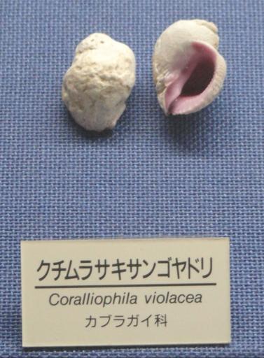 | Keywords: Coralliophila violacea - Osaka Museum of Natural History - DSC07838.JPG en Exhibit in the Osaka Museum of Natural History Osaka Japan Photography was permitted in the museum without restriction Daderot 2012-08-27 22 36 13 Daderot cc0 cc0 Shells in the Osaka Museum of Natural History Coralliophila violacea |