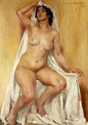 | Keywords: Corinth Female nude.jpg Artwork Creator Lovis Corinth 1909 oil canvas cm 155 111 Institution National Museum Gdańsk accession number MNG/SD/3334/M object history credit line Lovis Corinth / 1909 signature/date upper right http //mng gda pl/zbiory/sztuka-dawna/malarstwo-gdanskie-i-niemieckie/ mng gda pl See below PD-old-100 DEFAULTSORT 1909; Female nude Paintings in the National Museum in Gdańsk Paintings by Lovis Corinth Nude paintings by Lovis Corinth 1909 paintings 20th-century oil paintings of sitting women at full length |
