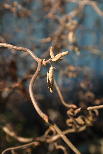 Keywords: corkscrew hazel c avellana contorta inflorescences common hazel male blossom kitten corylus avellana hazel birch greenhouse betulaceae bush spring frühlingsanfang hazelnut sausage nature plant flora inflorescence tree mutation