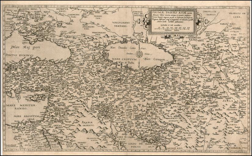 Keywords: Cornelis De Jode. Primae Partis Asiae accurata delineatio. (Unrecorded Variant, 1578).jpg Cornelis De Jode Primae Partis Asiae accurata delineatio ¦ shows Cyprus Unrecorded Variant en Unrecorded variant edition of De Jode'shighly desireable map of the region bounded by the Black Sea and Mediterranean in the West and Afganistan and Central Asia in the East Cyprus is prominently shown in the Eastern Mediterranean The present example is identical to th 1579 edition of the map but also includes the name Meotis in the Mare de le Zabache Sea of Azov Palus Meotis was the ancient name for Sea of Azof with references to the name dating back to Strabo and before De Jode's was a contemporary of Ortelius His Speculum Orbis did not enjoy the same commercial success as Ortelius making his maps very scarce and highly desireable This map was engraved by the van Deutecum brothers and is based upon an earlier map by Gastaldi http //www raremaps com/gallery/detail/19881/Primae_Partis_Asiae_accurata_delineatioa_shows_Cyprus_Unrecorded_Variant/De 20Jode html www raremaps com References Al-Qasimi p 31 1578 Cornelis de Jode PD-Art-100 Cornelis de Jode 1578 maps Old maps of the Caucasus Old maps of the Middle East Old maps of Turkey 16th-century maps of Georgia Johannes van Deutecum |
