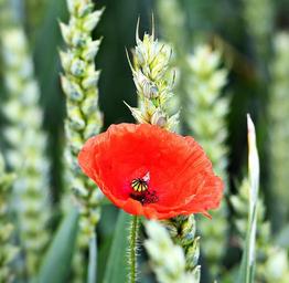 Keywords: cornfield poppy flower cereals red wheat field mohngewaechs agriculture summer klatschmohn nature poppy flower grain blossom bloom wheat wild flowers barley field arable food red poppy