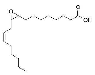 Keywords: Coronaric acid.svg Chemical structure of coronaric acid 9 10-epoxy-12Z-octadecenoic acid; 9 10 -EpOME Own 15 54 16 January 2016 UTC Ed Edgar181 Unsaturated fatty acids Epoxides