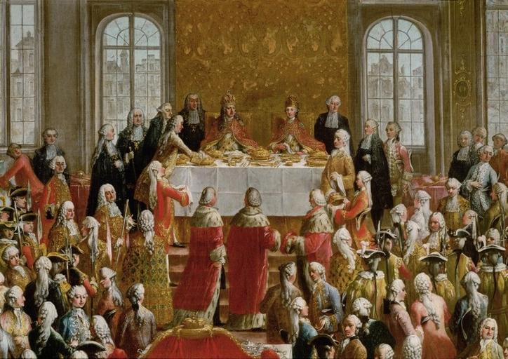 | Keywords: Coronation Banquet of Joseph II in Frankfurt (detail).jpg School of Coronation Banquet for the Holy Roman Emperor Joseph II in Frankfurt 1764 de Krönungsmahl Josephs II in Frankfurt am Main > 1764 Oil on canvas Institution Schönbrunn Palace http //text habsburger net/module/die-oeffentliche-tafel-2013-ein-augenschmaus-fuer-die-menge/die-oeffentliche-tafel/MB-ST_R1-MOD6-04 jpg/ size preview plus 1 other versions <gallery>File Krönungsmahl Joseph II jpg</gallery> PD-old-100 Martin van Meytens Paintings in the Palace of Schönbrunn Coronation of Joseph II Holy Roman Emperor Paintings of Joseph II Holy Roman Emperor 18th-century oil on canvas paintings in Austria Paintings of banquets Coronation meals Details of paintings Haus zum Römer Paintings by Martin van Meytens with fur Ermine clothing in art |