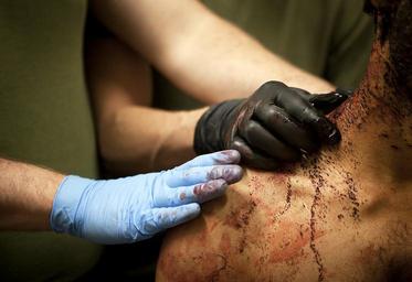 | Keywords: Corpsman Up (6963905442).jpg Navy Petty Officer 3rd Class Benjamin Knauth blue a 29-year-old native of Centennial Colo and Petty Officer 2nd Class Dustin Koch a 26-year-old native of Las Cruces N M corpsmen with 3rd Battalion 3rd Marine Regiment place reassuring hands on the shoulder of an Afghan National Policeman while examining his injuries in the battalion aid station here following an attack by a suicide bomber in Helmand province's Garmsir district April 19 2012 The 3/3 corpsmen treated eight injured Afghan policemen after being faced with a mass casualty situation following the attack on an ANP precinct headquarters in Garmsir's Lakari region Ten of the 18 total ANP casualties died from wounds sustained in the attack After initially being stabilized by three 3/3 corpsmen at Combat Outpost Sharp eight casualties were transported to FOB Delhi and treated by a team of 28 Navy personnel Medical evacuation helicopters later transported six ANP casualties to Camp Dwyer's Casualty Support Hospital for further treatment while the remaining two were treated and released U S Marine Corps photo by Cpl Reece Lodder https //www flickr com/photos/marine_corps/6963905442/ Corpsman Up 2012-04-19 23 29 https //www flickr com/people/40927340 N03 Marines from Arlington VA United States PD-USGov United States Marine Corps Official Page https //flickr com/photos/40927340 N03/6963905442 2016-09-03 23 32 48 United States Government Work Afghan Local Police Bombing Forward Operating Base Delhi Garmsir District International Security Assistance Force Marine Corps Base Hawaii Operation Enduring Freedom Amphibious forces Improvised explosive devices North Atlantic Treaty Organization People of Afghanistan Photographers Suicide terrorism |
