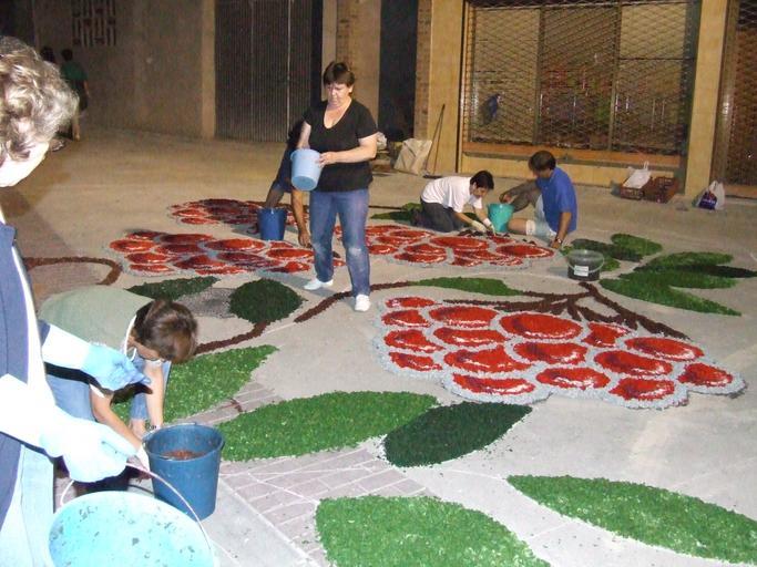 | Keywords: Corpus Christi flower carpet in Tamarite 2006-025.jpg Corpus Christi celebration on Tamarite de Litera Year 2006 People hard at work near 2 00 AM filling the chalk outlines with coloured sawdust from buckets Corpus Christi en Tamarite de Litera Año 2006 Gente trabajando duro cerca de las dos de la mañana rellenando los trazados en tiza con serrín coloreado sacado de cubos Own Enric Naval Finished work File Corpus Christi flower carpet in Tamarite 2006-030 jpg Corpus Christi in Tamarite de Litera Sawdust carpets |