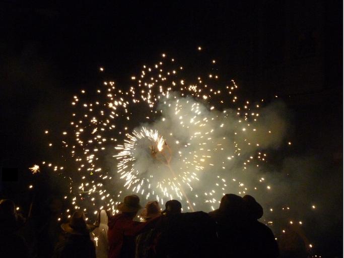 | Keywords: Correfocs (literally in English "fire-runs") are among the most striking features present in Catalan festivals. In the correfoc, a group of individuals will dress as devils and light fireworks - fixed on devil's pitchforks or strung above the route. Dancing to the sound of a rhythmic drum group, they set off their fireworks among crowds of spectators. The spectators that participate dress to protect themselves against small burns and attempt to get as close as possible to the devils... running with the fire. Other spectators will watch from 'safe' distances, rapidly retreating as necessary. popular cultura correfoc terrassa fmterrassa2016 |