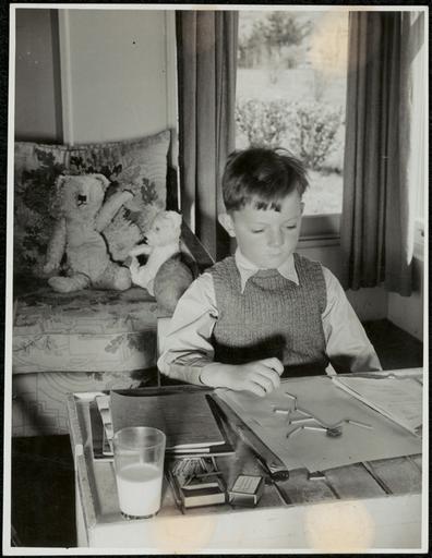 | Keywords: archives state records nsw staterecordsnsw newsouthwales blackandwhite school distance education distanceeducation children toys people black and white Title: Correspondence School - From the Commonwealth Film Unit production School in the Mailbox Directed by Stanley Hawes. A boy fortified by a glass of milk and supported by his teddy bears and football successfully completes a button and match stick man as a exercise for his State Correspondence School teacher. Dated: c.1946 Digital ID: 15051_a047_003379 Series: NRS 15051 School Photograph Collection Rights: No known copyright restrictions www.records.nsw.gov.au/about-us/rights-and-permissions We'd love to hear from you if you use our photos/documents. Many other photos in our collection are available to view and browse on our website using Photo Investigator. Title: Correspondence School - From the Commonwealth Film Unit production School in the Mailbox Directed by Stanley Hawes. A boy fortified by a glass of milk and supported by his teddy bears and football successfully completes a button and match stick man as a exercise for his State Correspondence School teacher. Dated: c.1946 Digital ID: 15051_a047_003379 Series: NRS 15051 School Photograph Collection Rights: No known copyright restrictions www.records.nsw.gov.au/about-us/rights-and-permissions We'd love to hear from you if you use our photos/documents. Many other photos in our collection are available to view and browse on our website using Photo Investigator. |