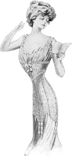 | Keywords: CorsetStyles1909-1910p03style500.png en Properly tailored the long slim effects are decidedly successful for well sexed women<br>WOOLNOUGH'S SYBIL Style 500<br>The effect of the slim lines falling in their proper places on the figure as they do in our Tailored-for-the-Indi-vidual Corsets is marvellous The tempting prices for this model are 3 50 6 00 10 00 15 00 and 17 50 Really the prices of readymades only Corset Styles 1909-1910 Woolnough-Corsetiers 1909 PD PD-Art Corset Styles 1909-1910 Fashion in 1909 |