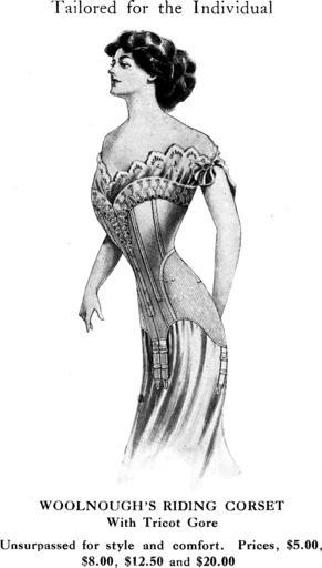 | Keywords: CorsetStyles1909-1910p05.png en Tailored for the Individual<br>WOOLNOUGH'S RIDING CORSET With Tricot Gore Unsurpassed for style and comfort <br>Prices 5 00 8 00 12 50 and 20 00 Corset Styles 1909-1910 Woolnough-Corsetiers 1909 PD PD-Art Corset Styles 1909-1910 |