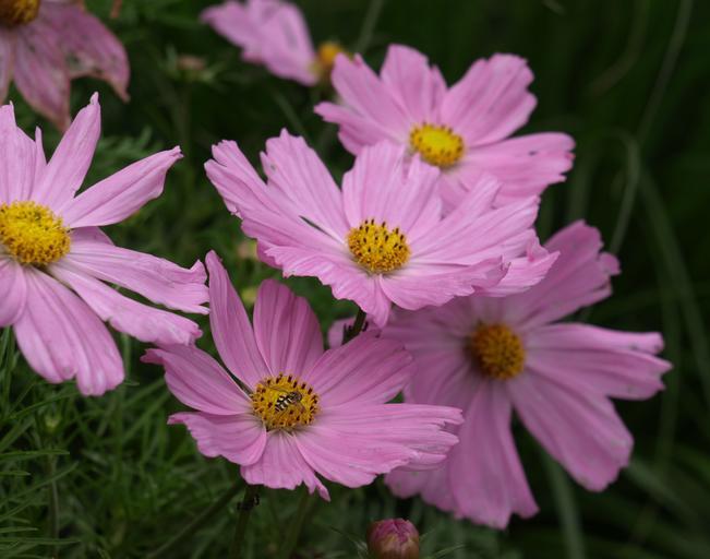 Keywords: cosmos cosmea shrub summer cosmee pink light purple ornamental flower hoverfly
