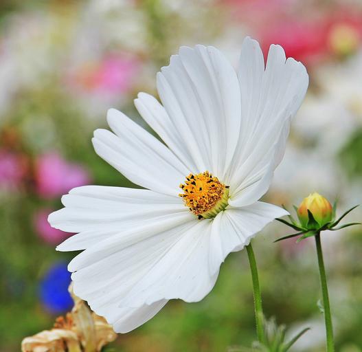 Keywords: cosmos cosmea tree daisy flower blossom bloom white flower white blossom garden plant marguerite argyranthemum frutescens summer colorful bloom flora ornamental flower bud nature