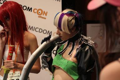 | Keywords: Cosplay at Comicdom 2012 in Athens, Greece 23.JPG en A cosplayer wearing a self-made costume representing the Tira character from Soulcalibur V grants an interview to journalists from the MTV television channel and also poses for other the photojournalists' cameras at Comicdom 2012 an annual cosplay competition held at Hellenic American Union in Kolonaki Athens Greece Photo donated to the public domain free of copyright restrictions Journalistic use For Journalistic use 2012-03-31 18 14 48 own Cogiati cc-zero consent public place Canon EF 50mm f/2 5 Compact Macro Canon EOS 60D Cosplay of Tira Soulcalibur Uploaded with UploadWizard Green clothing female Cosplay at Comicdom 2012 Cosplay in Greece Taken with Canon EOS 60D |