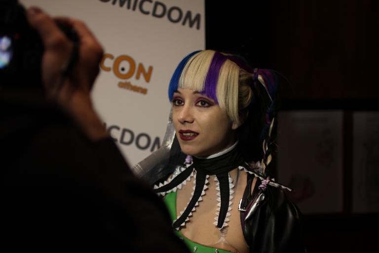 | Keywords: Cosplay at Comicdom 2012 in Athens, Greece 08.JPG en A cosplayer identified as Sofia Lucifairy wearing a self-made costume representing the Tira character from Soulcalibur V grants an interview to journalists from the MTV television channel and also poses for other the photojournalists' cameras at Comicdom 2012 an annual cosplay competition held at Hellenic American Union in Kolonaki Athens Greece Photo donated to the public domain free of copyright restrictions Journalistic use For Journalistic use 2012-03-31 18 14 26 own Cogiati cc-zero consent public place Interviews with cosplayers at Comicdom 2012 Cosplay of Tira Soulcalibur Green clothing female Taken with Canon EOS 60D Taken with Canon EF 50mm F2 5 Compact Macro |