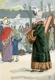 | Keywords: Cossack encampment on the Champs-Elysées, 1814.jpg Artwork This scene depicts Russian soldiers in Paris after the allied invasion of Paris following Napoleon's defeat in March 1814 The woman in the background is wearing a fashionable cashmere shawl while the woman in the foreground is wearing a fur-trimmed coat with a fur muff Both women are wearing high hats embellished with feathers and silk ribbons Source for abstract Ruppert Jacques Le Costume Français Paris Flammarion 1996 1898 1 colored plate 10 x 15 cm Institution Brown University Library object history exhibition history credit line accession number 1150467018825182 PD-old-100 Images of Paris from the Brown University Library Les modes de Paris 030 1814 in Paris Fashion in 1814 Avenue des Champs-Élysées in the 1810s Fur garments in art Muffs in art People on Avenue des Champs-Élysées Women wearing coats 1814 Fur fashion in 1814 |