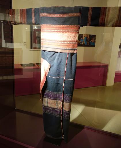 Keywords: Costume, Bahnar, Binh Dinh, 1970, view 1, handmade cotton, natural dyes, ikat & woven patterns, shirt with stars and insect eyes, skirt with Job's Tears seeds - Vietnamese Women's Museum - Hanoi, Vietnam - DSC03940.JPG en Exhibit in the Vietnamese Women's Museum Hanoi Vietnam Photography was permitted in the museum without restriction 2014-08-04 03 22 52 own Daderot other versions cc-zero Uploaded with UploadWizard Clothing in the Vietnamese Women's Museum Bahnar people |