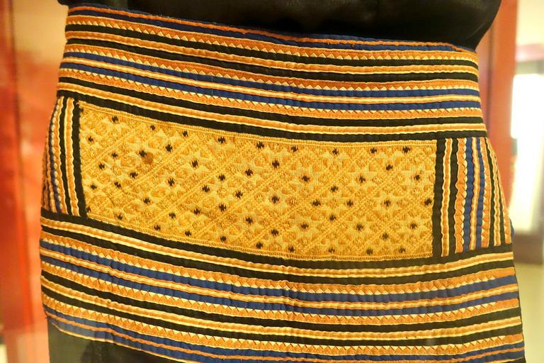 MAKE A MEME View Large Image Costume detail, Hmong Den, Hoa Binh, 1950, view 2, handmade and industrial cotton, hemp, batik patterns, embroidery, applique - Vietnamese Women's Museum - Hanoi, Vietnam - DSC03790.JPG en Exhibit in the Vietnamese Women's Museum Hanoi ...