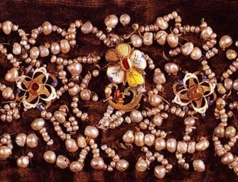 Keywords: Costume jewelry of Constance of Austria.jpg Costume jewelry of Constance of Austria Ozdoby stroju Konstancji Austriaczki Pearls gold silver diamonds garnets enamel Kraków Institution Wawel Cathedral own BurgererSF Object history From the Queen's grave < 1631 attributed to PD-Art Mikołaj Siemiradzki Treasury of the Wawel Cathedral Jewels from the Polish Vasa Collection 17th-century jewellery Pearl jewellery |