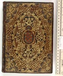 Keywords: Costumes generalles..de BRETAGNE - Upper cover (Davis511).jpg Style All over design Armorial; Caption Upper cover; Colour Brown; Edge Gauffered Gilt exhibition history Decorative Technique Tooled in gold Painted; Cover Material Calf XVI th second half century Brittany Rennes bound for Kergounadech A Hobson French and Italian collectors p 54-55 n 25 reproduces a similar Breton binding probably bound at Rennes c 1581 for Nicolas Le Prevost du Parc kings' advisor in 1588 on Coustumes generales des Pays et Duché de Bretagne Rennes Julien du Clos 1581 Two other bindings from this workshop are known J Baer Co Frankfurter Bücherfreund 12 taf 49; the other Gramont sale Paris 18 December 1933 lot 22 on Coustumes generalles de Bretagne Paris Jacques Dupuis 1584 object history Text 1584; Paris; Kergounadech object type Cc-zero place of creation Binding France place of discovery Unspecified British Library image http //www bl uk/catalogues/bookbindings/LargeImage aspx RecordId 020-000004198 ImageId ImageId 41704 Copyright BL Costumes generalles de BRETAGNE Uploaded with GWToolset Costumes generalles de BRETAGNE - Upper cover Davis511 http //www webarchive org uk/bldatasets/bindings/6220_4 jpg Bookbinding 16th-century bookbinding British Library Bookbindings |