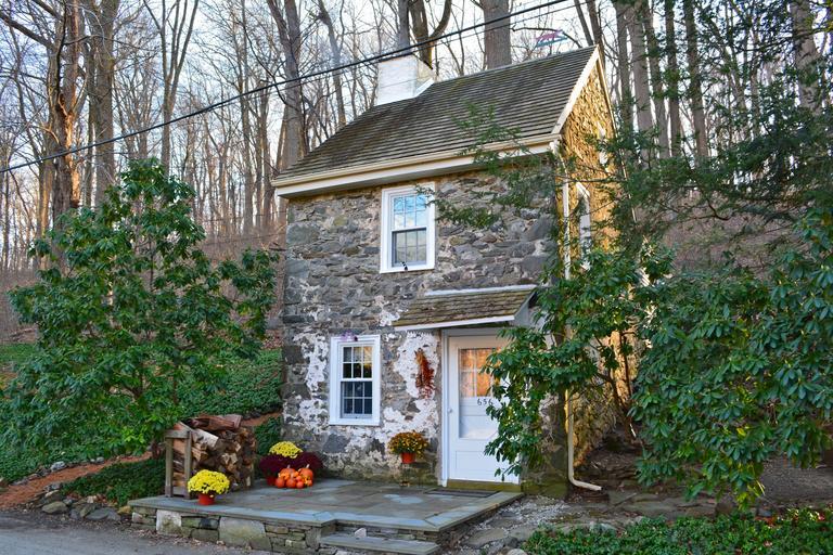 Keywords: Ridley Creek stream autumn Ridley Creek State Park Pennsylvania cottage