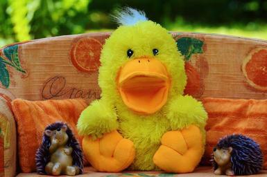 Keywords: couch sofa duck hedgehog friends funny soft toy toys children meadow cute sweet yellow cheerful