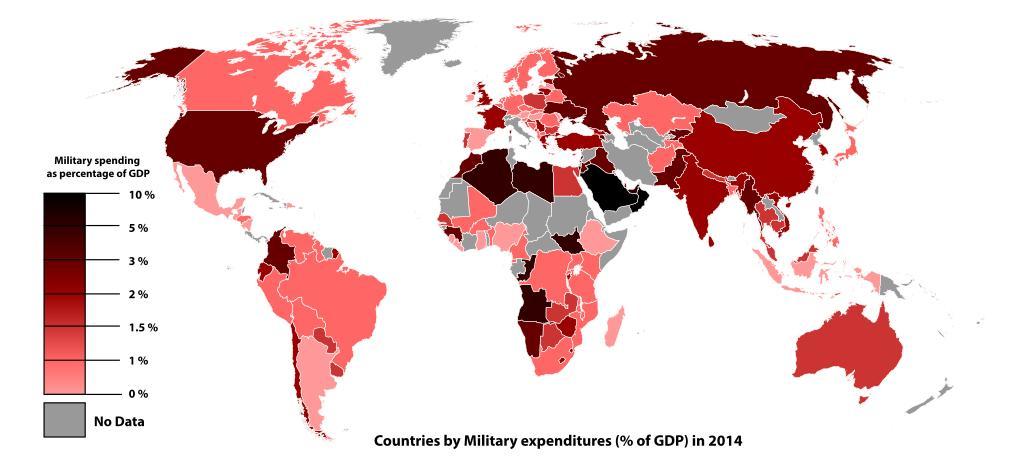 | Keywords: Countries by Military expenditures (% of GDP) in 2014.svg en Countries by military expenditures of their GDP in 2014 based on data from the http //data worldbank org/indicator/MS MIL XPND GD ZS World Bank 2015-09-19 own ; Used a blank map from https //upload wikimedia org/wikipedia/commons/0/03/BlankMap-World6 svg here <strong><span style font-family Hobo Std; font-size 13 6px; text-shadow Silver 0 1em 0 1em 0 08em;class texhtml ><font color 088A08 >Ali Zifan</font></span></strong> other versions cc-zero Uploaded with UploadWizard Countries by Military expenditures (% of GDP) in 2014.svg en Countries by military expenditures of their GDP in 2014 based on data from the http //data worldbank org/indicator/MS MIL XPND GD ZS World Bank 2015-09-19 own ; Used a blank map from https //upload wikimedia org/wikipedia/commons/0/03/BlankMap-World6 svg here <strong><span style font-family Hobo Std; font-size 13 6px; text-shadow Silver 0 1em 0 1em 0 08em;class texhtml ><font color 088A08 >Ali Zifan</font></span></strong> other versions cc-zero Uncategorized 2016 February 14 |