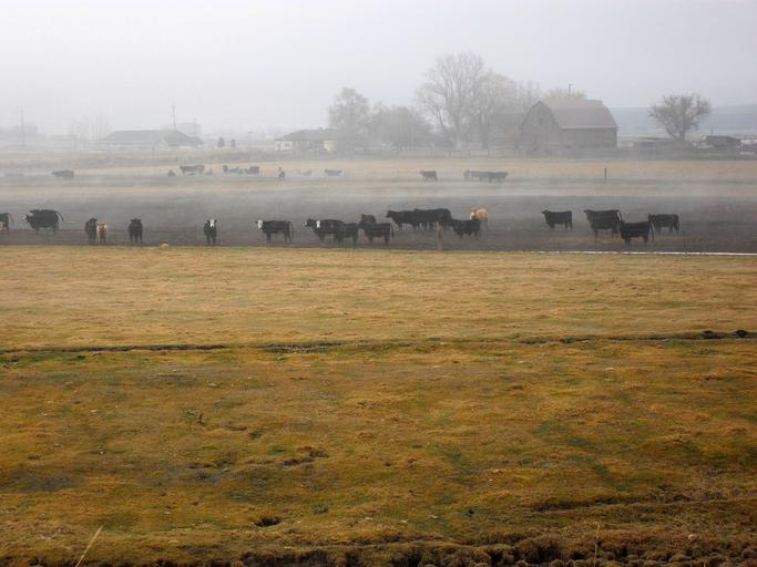 Keywords: country rural cattle field scenery farming scenic scene land outdoor agriculture farm grass countryside landscape grazing hazy cloudy beauty view eastern oregon ranch klamath falls