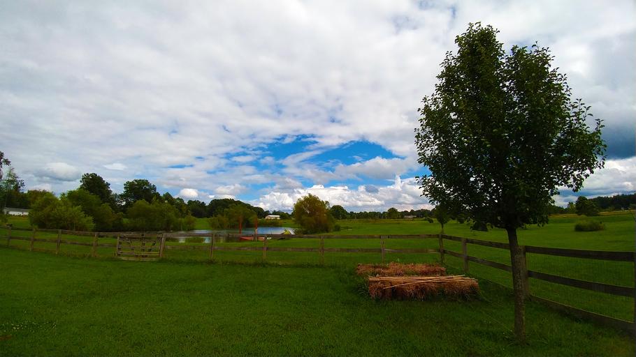 | Keywords: countryside nature pond trees sky landscape outdoors scene scenery rural gate fence hay clouds environment natural foliage meadow water outside field vibrant cloudy peaceful calm scenic country land farm farmland serene relaxing relaxation quiet natural landscape |