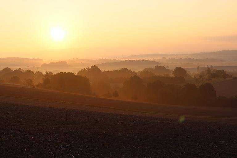 Keywords: countryside sunset view hills rural fields agricultural landscape golden light sunlight summer bright sun outdoor scene season country horizon land