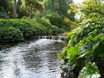 Keywords: county wicklow water glistening river ireland greenery trees shrubs plants bank stones day beautiful scenery