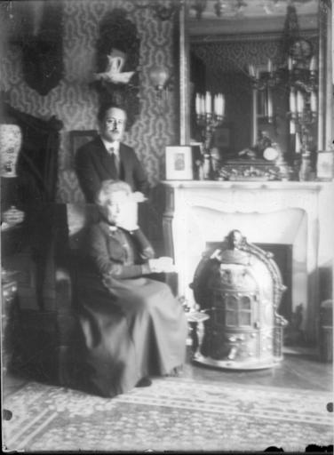Keywords: Couple-au-poele pos.jpg Digitalisation d'une plaque photographique Plaque achetée sur un vide grenier en France La photographie représente un couple dans une pièce avac un poêle Le fichier du négatif a été traité avec Gimp pour obtenir le cliché en positif Scanned photographic plate The plate was bought at a flea market in France The picture shows a woman and a man in a room with a stove The scan file of the negative has been treated with Gimp to obtain the positive picture Flea market probably end of the XIXth century unknown scanned by Romary 95 px PD-old Photographic plates Black and white photographs of women and men |