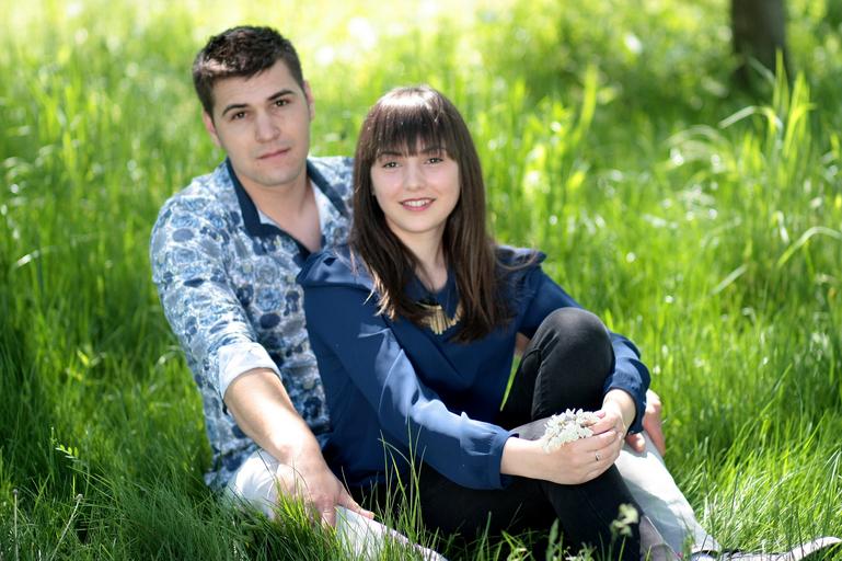 Keywords: couple love romantic park grass green happiness