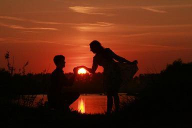 Keywords: couple love sunset water sun shadow romance in the evening