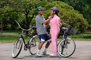 MAKE A MEME View Large Image Couple preparing for bike ride (1).jpg An African-American man adjusts an African-American woman's helmet strap as they prepare for a bicycle ride Topics/Categories Locations -- Nature/Outdoors People -- Adult People -- Recreation Type ...