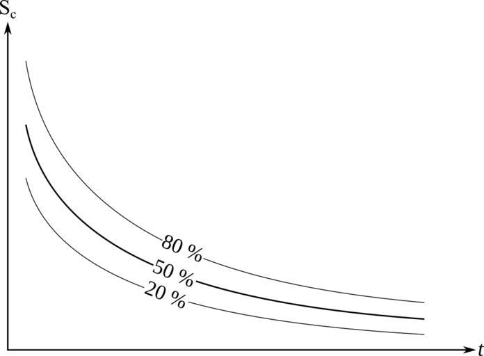 | Keywords: Courbe contrainte durée de vie.svg en Stress-lifetime curves for a given σ<sub>c</sub> constant stress level half the systems fail after a duration t which gives the 50 curve Several curves can be drawn for different probabilities of failure here 20 et 80 of failure fr Courbes contrainte-durée de vie pour un niveau de contrainte constant σ<sub>c</sub> la moitié des système présente une défaillance au bout d'un temps t ce qui donne la courbe « 50 » Plusiuers courbes peuvent être tracées pour différents niveaux de fiabilité ici 20 et 80 de défaillance 2012-05-24 own Cdang inkscape cc-zero Uploaded with UploadWizard Engineering failures Reliability |