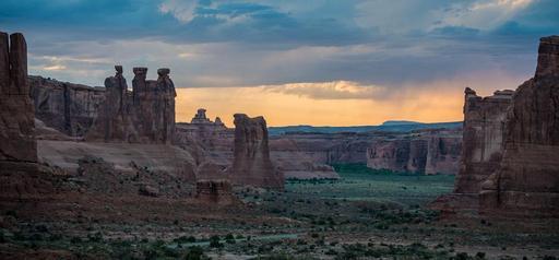 Keywords: courthouse towers arches national park sunset dusk evening wilderness moab utah sandstone landscape rock desert america travel scenic outdoors geology formation usa