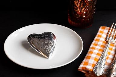 Keywords: cover plate cutlery restaurant board eat table fork knife tableware gastronomy rustic guest room heart romantic i love you romance valentine's day connectedness luck deco love