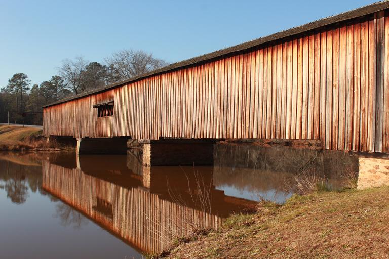 Keywords: covered bridge reflection lake wooden wood historic river tourism