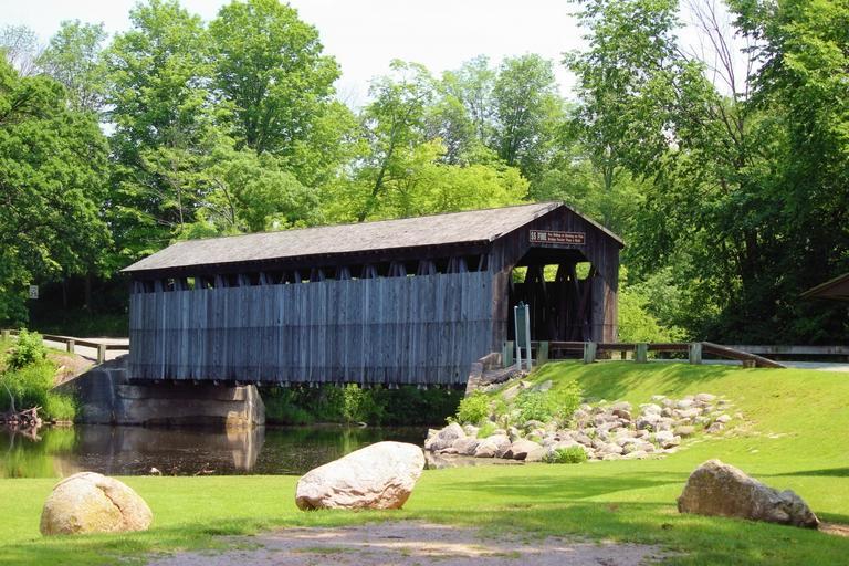 MAKE A MEME View Large Image covered bridge water grass nature sky country