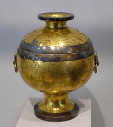 Keywords: Covered Dou Food Container with Animal-Mask Ring Handles, China, Han dynasty, 206 BC to 22 AD, gilt bronze - Arthur M. Sackler Museum, Harvard University - DSC00931.jpg en Exhibit in the Arthur M Sackler Museum Harvard University Cambridge Massachusetts USA This artwork is in the public domain because the artist died more than 70 years ago 2015-04-11 11 11 05 own Daderot other versions PD-old-70 cc-zero Chinese metalwork in the Sackler Museum Metalwork of the Han Dynasty Dou vessel |
