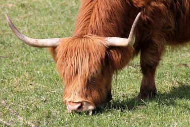 Keywords: cow beef horns pasture highland beef shaggy