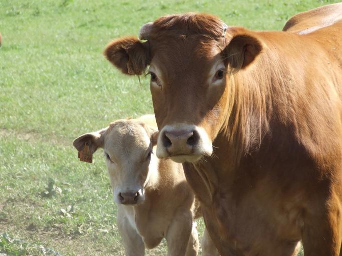Keywords: cow calf meadow brown cattle agriculture farm mammal domestic outdoor farm animals rural livestock ranch domestic animals farmland