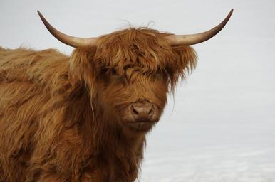 Keywords: cow furry hairy brown horns farm animal animal fur shaggy bovine rare breed colored mammal cattle livestock