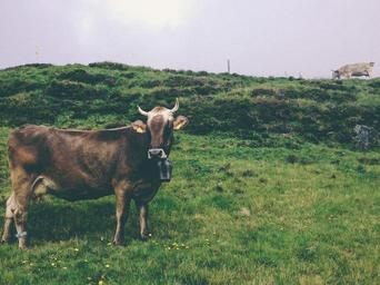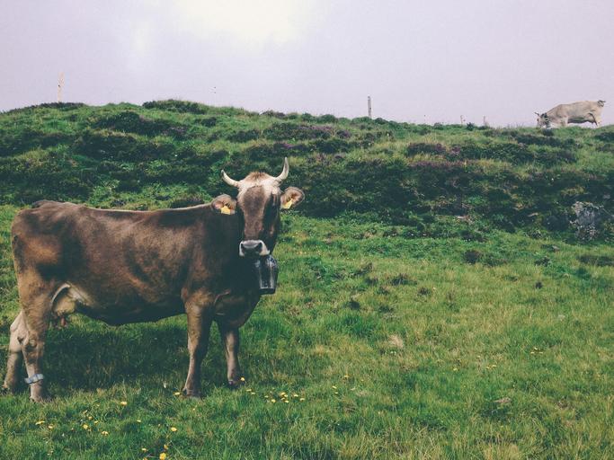 Keywords: cow heifer cowbell pasture animal cattle livestock farming agriculture rural mammal farm grass field nature meadow beef bovine standing grassland countryside brown dairy farmland graze country landscape