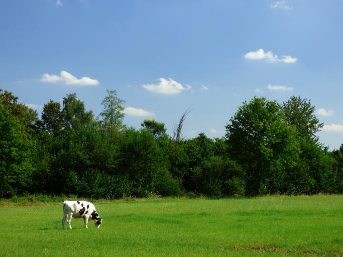 Keywords: cow pasture sky graze lonely meadow nature landscape blue field summer warm
