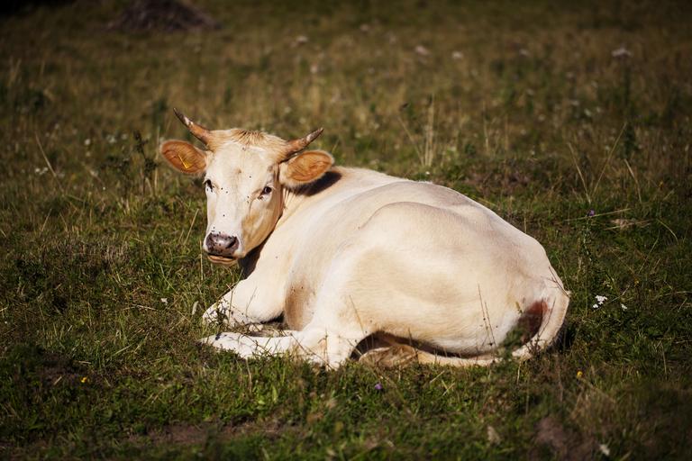Keywords: cow pasture village slovakia white grass pet farm economy